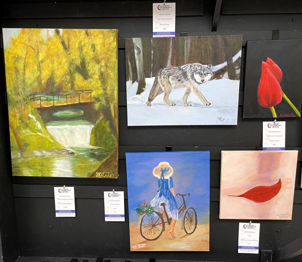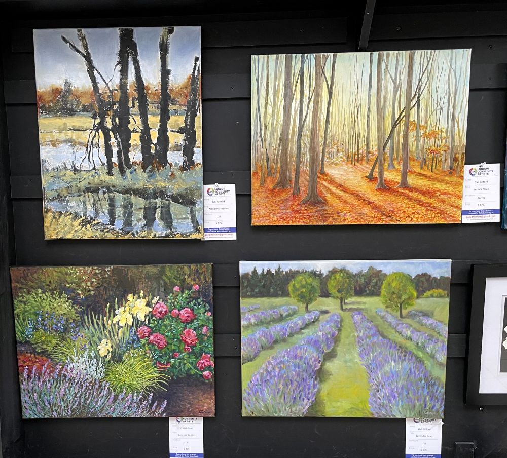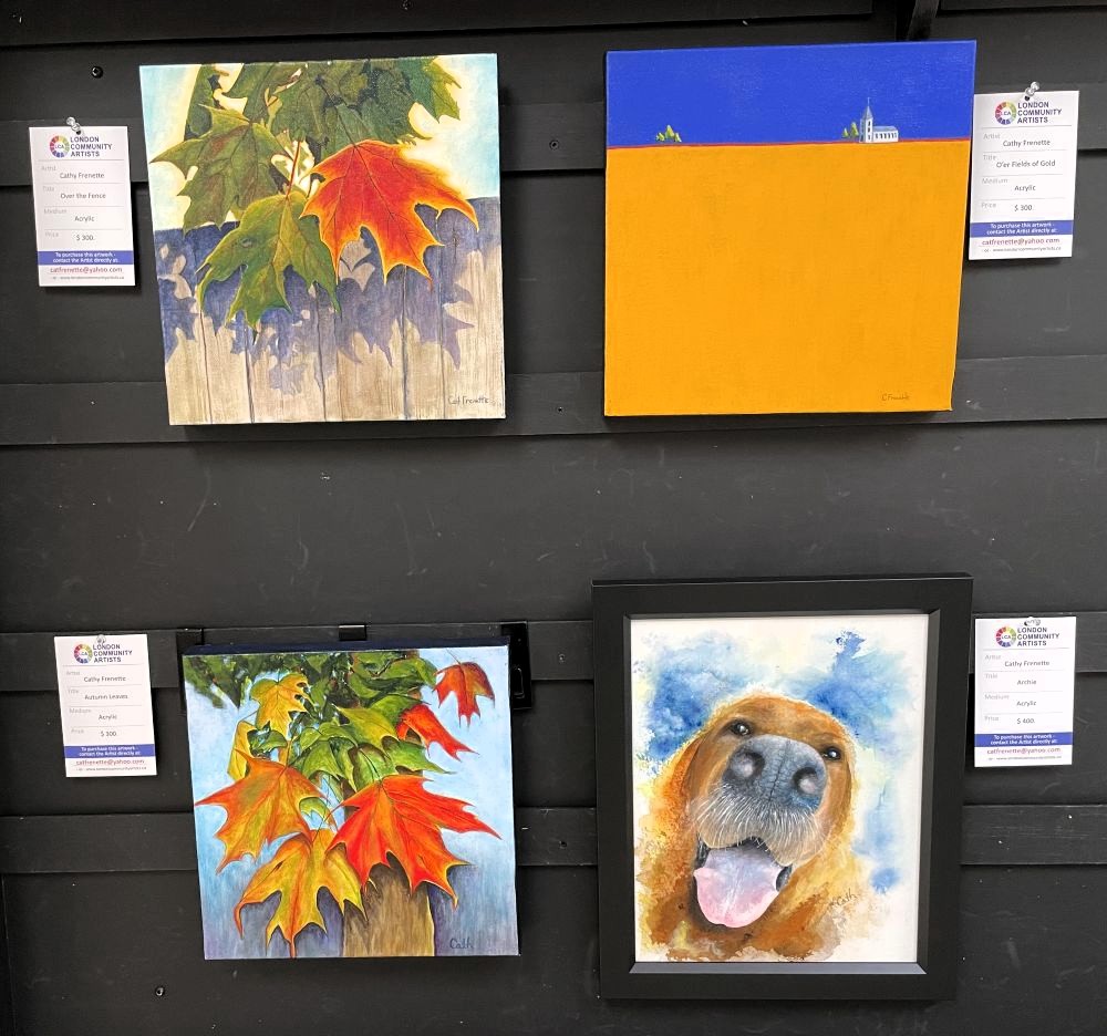 London Community Artists invite you to visit Cherryhill Village Mall where you can see this artwork in person.  Artwork by members of London Community Artists will be on display on an ongoing basis in the corridor leading to the Passport Office near Shoppers Drug Mart.  If you see a painting that you liked at Cherryhill Mall and would like to contact the artist, feel free to visit their profile page.  Alternately, you can contact us at info@londoncommunityartists.ca and we will connect you with the artist. Please note: we switch out the artwork every 5 weeks so keep visiting to see new work.   We hope you enjoy the paintings!